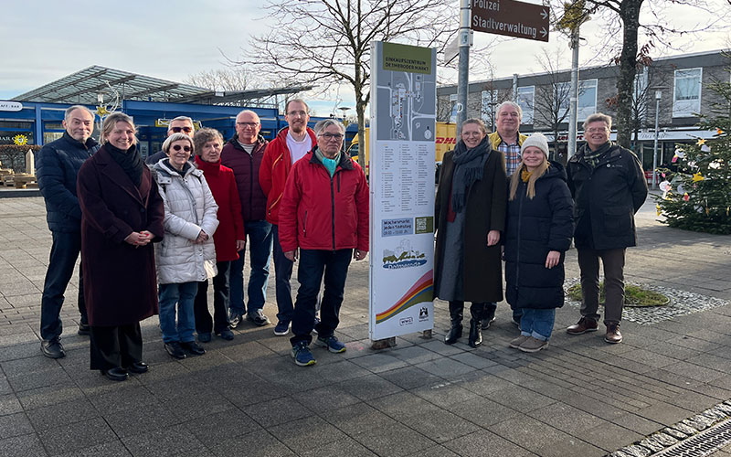 Ab sofort ist die Orientierung am Detmeroder Markt einfacher: Drei neue Informationsstelen dienen der Besucherlenkung und -information. Auf einer übersichtlich gestalteten Karte zeigen sie die genaue Lage der vor Ort ansässigen Geschäfte, gastronomischen Betriebe, Dienstleistungsangebote, Arztpraxen und weiterer Einrichtungen. Die Wolfsburg Wirtschaft und Marketing GmbH (WMG) hat die Aufstellung auf Initiative der örtlichen Gewerbetreibenden gemeinsam mit der Stadtverwaltung und dem Ortsrat Detmerode koordiniert und freut sich über die offizielle Einweihung mit Vertreter*innen des Ortsrates und den Gewerbetreibenden.