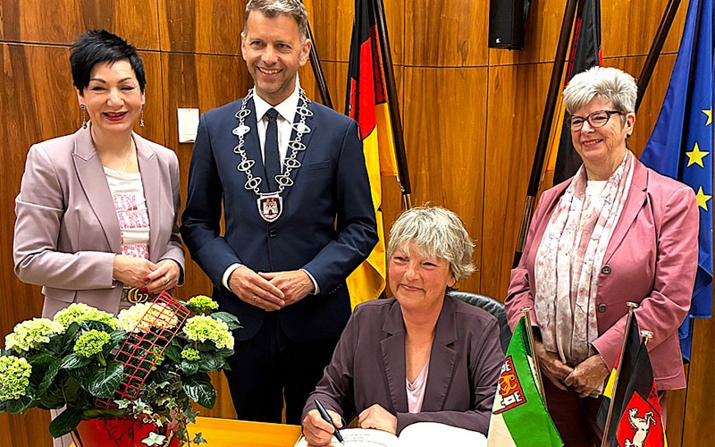 Oberbürgermeister Dennis Weilmann hat jetzt das Präsidium des Niedersächsischen Landtages im Wolfsburger Rathaus empfangen. Angeführt wurde die Delegation von Landtagspräsidentin Hanna Naber, die sich bei dem Besuch in das Goldene Buch der Stadt Wolfsburg eintrug. Der Besuch fand im Rahmen des Formats Präsidium vor Ort statt. Mit diesem ist das Präsidium des Niedersächsischen Landtages in ganz Niedersachsen unterwegs, um auch außerhalb Hannovers mit Bürgerinnen und Bürgern ins Gespräch zu kommen, Einblicke in die parlamentarische Arbeit zu geben und für demokratische Prozesse zu werben.